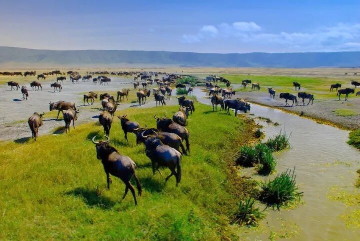 In Northeast Tanzania is the Serengeti National Park, one of Africa’s most incredible conservation areas. The name Serengeti means endless plains, and that is exactly what you’ll find within the park. More than a million wildebeest, and over 200,000 zebras, migrate through the plains each year. When you visit the Serengeti National Park, you will be able to see wildlife like cheetahs, leopards, giraffes, buffalo, gazelles and so much more. Hot air balloon trips as well as photo safaris are both incredible ways to make the most of the Serengeti.